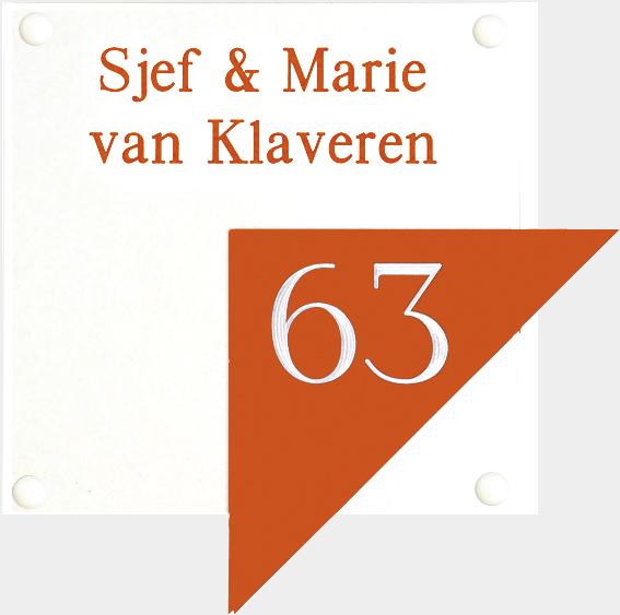 Gravoglas is een luxe en tegelijk stevige kunststofsoort (3 mm dikte), met de uitstraling van gekleurd glas, welke uitstekend geschikt is voor gebruik in en rondom uw woning. De tekst wordt in alle gravoglas-naamborden gegraveerd, waardoor uw naam niet weg kan slijten of vervagen. Het bijzondere aan gravoglas is dat het aan de achterzijde ingegraveerd wordt, dit in tegenstelling tot andere kunststofsoorten. Hierdoor blijft het materiaal aan de voorzijde glad en krijgt het een hele luxe uitstraling. Tot slot: de gravoglas-naamborden zijn standaard voorzien van schroefgaten (tenzij anders vermeld) en worden geleverd met afstandbusjes en afdekdopjes waardoor u het naambord eenvoudig op een korte afstand van de muur kunt monteren. Gravoglas een zeer luxe kunststofsoort dat tegen een stootje kan!