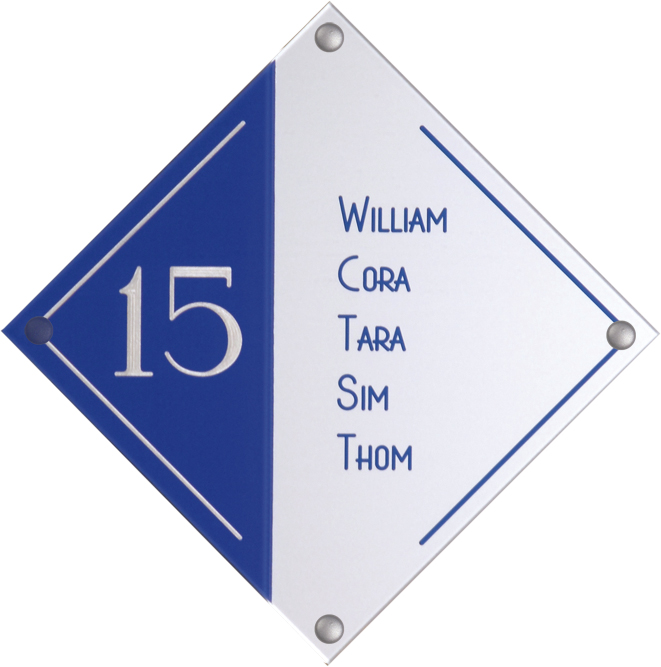 Gravoglas is een luxe en tegelijk stevige kunststofsoort (3 mm dikte), met de uitstraling van gekleurd glas, welke uitstekend geschikt is voor gebruik in en rondom uw woning. De tekst wordt in alle gravoglas-naamborden gegraveerd, waardoor uw naam niet weg kan slijten of vervagen. Het bijzondere aan gravoglas is dat het aan de achterzijde ingegraveerd wordt, dit in tegenstelling tot andere kunststofsoorten. Hierdoor blijft het materiaal aan de voorzijde glad en krijgt het een hele luxe uitstraling. Tot slot: de gravoglas-naamborden zijn standaard voorzien van schroefgaten (tenzij anders vermeld) en worden geleverd met afstandbusjes en afdekdopjes waardoor u het naambord eenvoudig op een korte afstand van de muur kunt monteren. Gravoglas een zeer luxe kunststofsoort dat tegen een stootje kan!