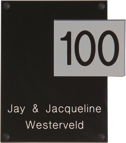 Gravoglas is een luxe en tegelijk stevige kunststofsoort (3 mm dikte), met de uitstraling van gekleurd glas, welke uitstekend geschikt is voor gebruik in en rondom uw woning. De tekst wordt in alle gravoglas-naamborden gegraveerd, waardoor uw naam niet weg kan slijten of vervagen. Het bijzondere aan gravoglas is dat het aan de achterzijde ingegraveerd wordt, dit in tegenstelling tot andere kunststofsoorten. Hierdoor blijft het materiaal aan de voorzijde glad en krijgt het een hele luxe uitstraling. Tot slot: de gravoglas-naamborden zijn standaard voorzien van schroefgaten (tenzij anders vermeld) en worden geleverd met afstandbusjes en afdekdopjes waardoor u het naambord eenvoudig op een korte afstand van de muur kunt monteren. Gravoglas een zeer luxe kunststofsoort dat tegen een stootje kan!