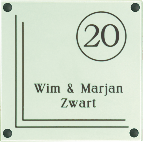 Gravoglas is een luxe en tegelijk stevige kunststofsoort (3 mm dikte), met de uitstraling van gekleurd glas, welke uitstekend geschikt is voor gebruik in en rondom uw woning. De tekst wordt in alle gravoglas-naamborden gegraveerd, waardoor uw naam niet weg kan slijten of vervagen. Het bijzondere aan gravoglas is dat het aan de achterzijde ingegraveerd wordt, dit in tegenstelling tot andere kunststofsoorten. Hierdoor blijft het materiaal aan de voorzijde glad en krijgt het een hele luxe uitstraling. Tot slot: de gravoglas-naamborden zijn standaard voorzien van schroefgaten (tenzij anders vermeld) en worden geleverd met afstandbusjes en afdekdopjes waardoor u het naambord eenvoudig op een korte afstand van de muur kunt monteren. Gravoglas een zeer luxe kunststofsoort dat tegen een stootje kan!