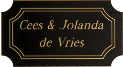 Het kunststof dat gebruikt wordt is een harde soort plastic (standaard 1,6 mm dikte), welke uitstekend geschikt is voor gebruik in en rondom uw woning. De tekst wordt in alle kunststofnaamborden gegraveerd, waardoor uw naam niet weg kan slijten of vervagen. De kunststofnaamborden bestaan uit twee kleuren: een onderliggende grondkleur en een bovenliggende topkleur. Wanneer uw naam in het naambord gegraveerd wordt, wordt de topkleur weg gegraveerd en verschijnt uw naam in de onderliggende kleur. Kunststof wordt standaard met een zelfklevende plaklaag geleverd. Daarmee kan het op vrijwel elke vlakke achtergrond gemakkelijk bevestigd worden. Het is echter niet geschikt om op een stenen of andere ongelijke achtergrond te bevestigen! Kunststof: eenvoudig en toch uniek!