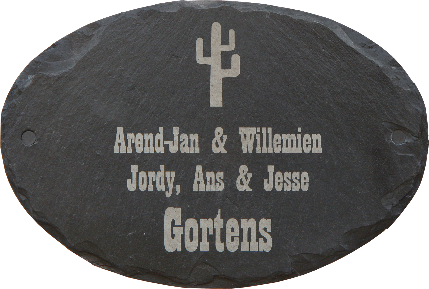 Leisteen is een zeer exclusieve natuursteen welke uitstekend geschikt is voor gebruik in en rondom uw woning. Leisteen wordt gewonnen in open groeven en mijnen. Het ontstaat uit klei die onder druk in de loop van vele jaren omgevormd wordt tot leisteen. De steen is sterk gelaagd en grijs/zwart van kleur. In de groeve worden schollen steen van de rots gespleten. Hierdoor ontstaat een natuurlijk splijtoppervlak en ruwe afgebrokkelde randen. Onze leisteen naamborden hebben door dit ontstaansproces een onregelmatig uiterlijk. Elk leisteen naambord is gelaagd en heeft een afgebrokkelde rand. Elk leisteen naambord is daardoor, hoewel dezelfde afmeting, toch steeds weer anders, uniek! Leisteen is slijtvast, maar kan aan de randen afschilferen. Door het robuuste uiterlijk wordt dit in de praktijk niet als storend ervaren. De tekst wordt in alle leisteen naamborden door middel van lasertechniek gegraveerd, waardoor uw naam niet weg kan slijten of vervagen. De gravure in leisteen wordt creme-grijs van kleur (met uitzondering van de 2511 t/m 2514). Alle leisteen naamborden zijn voorzien van schroefgaten en worden compleet met bevestigingsmateriaal geleverd. De schroefkoppen kunt u afdekken met de bijgeleverde zwarte afdekviltjes.