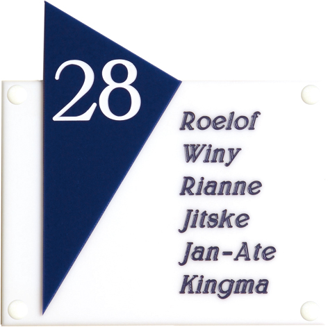 Perspex is een stevige kunststofsoort (3 mm dikte), welke uitstekend geschikt is voor gebruik in en rondom uw woning. De tekst wordt in alle perspex-naamborden gegraveerd, waardoor uw naam niet weg kan slijten of vervagen. De transparante perspex naamborden worden aan de achterzijde ingegraveerd (waardoor de voorkant glad blijft) en de gekleurde perspex naamborden worden aan de voorzijde ingegraveerd. Tot slot: de perspex-naamborden zijn standaard voorzien van schroefgaten (tenzij anders vermeld) en worden geleverd met afstandbusjes en afdekdopjes waardoor u het naambord eenvoudig op een korte afstand van de muur kunt monteren.