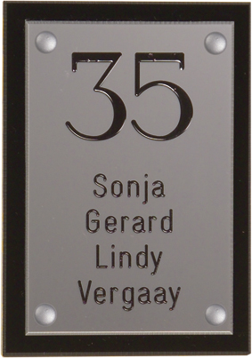 Perspex is een stevige kunststofsoort (3 mm dikte), welke uitstekend geschikt is voor gebruik in en rondom uw woning. De tekst wordt in alle perspex-naamborden gegraveerd, waardoor uw naam niet weg kan slijten of vervagen. De transparante perspex naamborden worden aan de achterzijde ingegraveerd (waardoor de voorkant glad blijft) en de gekleurde perspex naamborden worden aan de voorzijde ingegraveerd. Tot slot: de perspex-naamborden zijn standaard voorzien van schroefgaten (tenzij anders vermeld) en worden geleverd met afstandbusjes en afdekdopjes waardoor u het naambord eenvoudig op een korte afstand van de muur kunt monteren. Perspex een luxe kunststofsoort dat tegen een stootje kan!