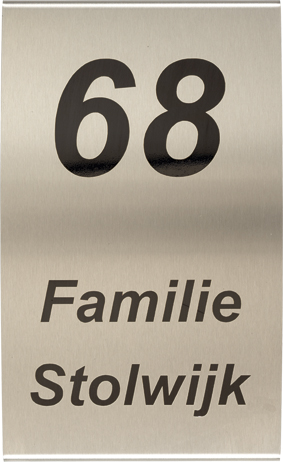 RVS is een zeer sterke staalsoort, welke uitstekend geschikt is voor gebruik in en rondom uw woning. RVS staat voor roest-vast-staal en is daardoor bijzonder weersbestendig, maar niet geheel vrij van onderhoud. Daarom dient uw RVS-naambord af en toe met HG snelglans (te verkrijgen bij de doe-het-zelf vakman en/of bouwmarkt) behandeld te worden. Het is niet verstandig de RVS-naamborden te poetsen, doordat de tekst op alle RVS-naamborden beletterd wordt; zo kan de tekstlaag niet beschadigen of vervagen, indien u geen belettering wenst, dient dit aan te geven in de opmerkingen, wij voorzien dan het naambord van een lasergravure, deze is altijd antraciet/zwart. Tot slot: alle RVS-naamborden worden standaard geleverd met RVS-bevestigingsmateriaal om zo oxidatie bij de schroefgaten tegen te gaan. (N.B. Bovenstaande geldt ook voor alle aluminium en RVS-look naamborden 1400/1500 serie met de uitzondering dat deze naamborden standaard zonder schroefgaten, maar zelfklevend geleverd worden). RVS uniek materiaal, geschikt voor allerlei stijlen, dat tegen een stootje kan!